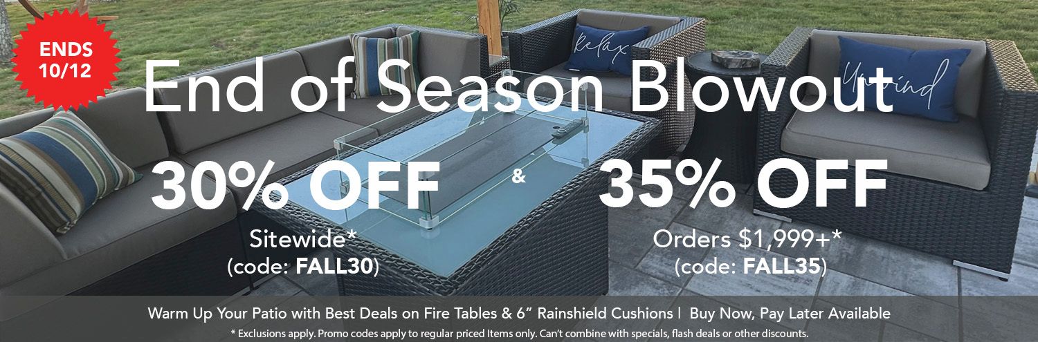 3 DAYS LEFT! END OF SEASON BLOWOUT -30% OFF SITEWIDE* (FALL30) & 35% OFF $1,999+ (FALL35) | UP TO 40% OFF SELECT COMBO SETS. ENDS 10/12!
