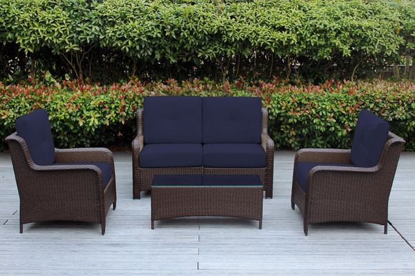 Fully Assembled Ohana 5-Piece Summit Collection Outdoor Patio Wicker Seating Set, Oversized High-Back Armchairs with 6" RainShield Cushions