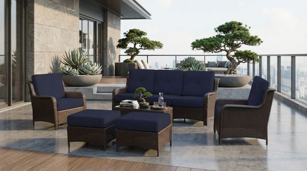 Bring timeless comfort to your outdoor space with this traditional high-back patio furniture set, designed for lasting style and durability. Plush 6" Rainshield™ cushions provide rainproof protection and exceptional support, while the high-back design encourages relaxed lounging. Sturdy, stationary chairs offer a classic, grounded feel ideal for conversation and everyday use. Crafted to withstand the elements, this set delivers enduring comfort season after season.
