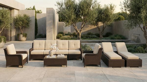 Bring timeless comfort to your outdoor space with this traditional high-back patio furniture set, designed for lasting style and durability. Plush 6" Rainshield™ cushions provide rainproof protection and exceptional support, while the high-back design encourages relaxed lounging. Sturdy, stationary chairs offer a classic, grounded feel ideal for conversation and everyday use. Crafted to withstand the elements, this set delivers enduring comfort season after season.
