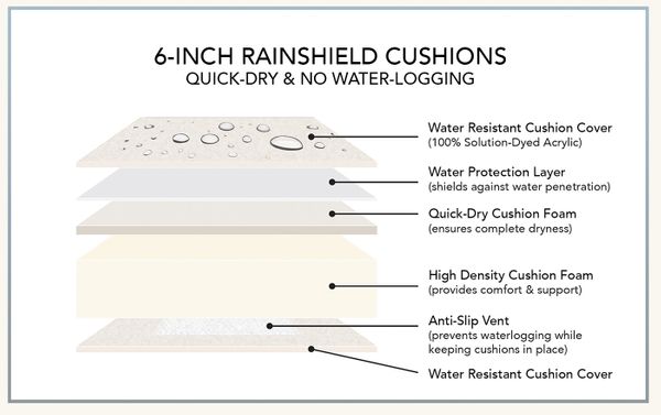 Ohana's Rainshield Collection is designed for luxurious outdoor living with worry-free maintenance so you can truly relax. Elevate your outdoor space with Ohana's 8 piece sectional with deluxe 6 inch Rainshield cushions. Specially designed to be quick drying, cushions are covered with weather resistant solution-dyed fabric including Sunbrella. Handwoven premium wicker and rust-free aluminum frames stays pristine throughout the seasons. 6-inch thick cushions allow you to sink into comfort while modular sectional makes it effortless to rearrange seating to suit various occasions, making it the perfect choice for family gatherings or entertaining friends.